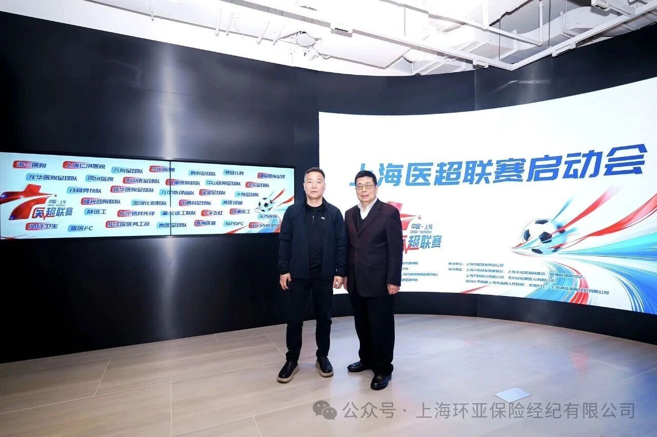 4月28日,由环亚保险经纪全程提供保险赞助和支持的2026上海医务职工足球超级联赛(“医超”)启动会暨抽签仪式在外滩FTC举行。环亚保险经纪总经理王成宝、总经理助理李振华代表公司出席活动。